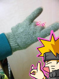 そんなわけで本を参考に作ったのは、手をキツネさんの形にすると目が光る手袋でございます。