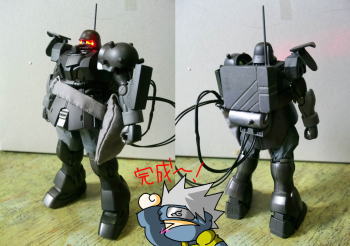 ただ電池ボックスを機体内に収納できなかった為、やたらでかいウエストポーチをくくりつける事となってしまいましたが、それはご愛嬌という事で(今のガンプラって精度よくて体に空洞がぜんぜんできのですよ…)