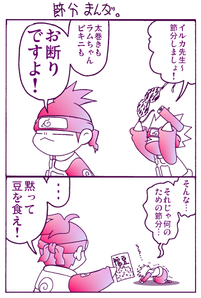Cマロさん:メッセージありがとうございます!節分漫画、いきなりシミネタでスミマセンです(照)