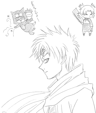 今週のジャンプ、という事で我愛羅くんを描いていたところ、紙の上部が余ったのでお兄ちゃんとお姉ちゃんも描いたのですがなんともギャフンな具合になってしまい戸惑うばかりのわたくし。