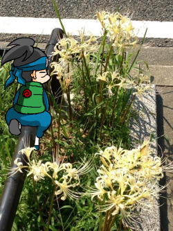 白とは珍しいなぁと周りを見やれば赤い彼岸花もちらほらと咲き始めておりました。