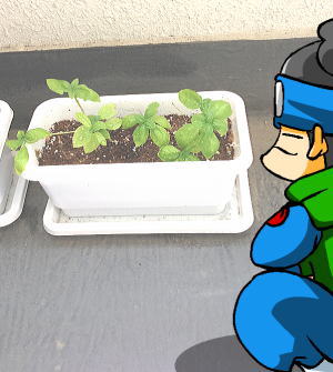 昨夜の大雨、そして連日の暑さにベランダの住人であるバジル君が元気なさげで心配でございます。