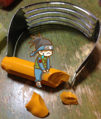 茹でたイモを潰す道具が大破。
